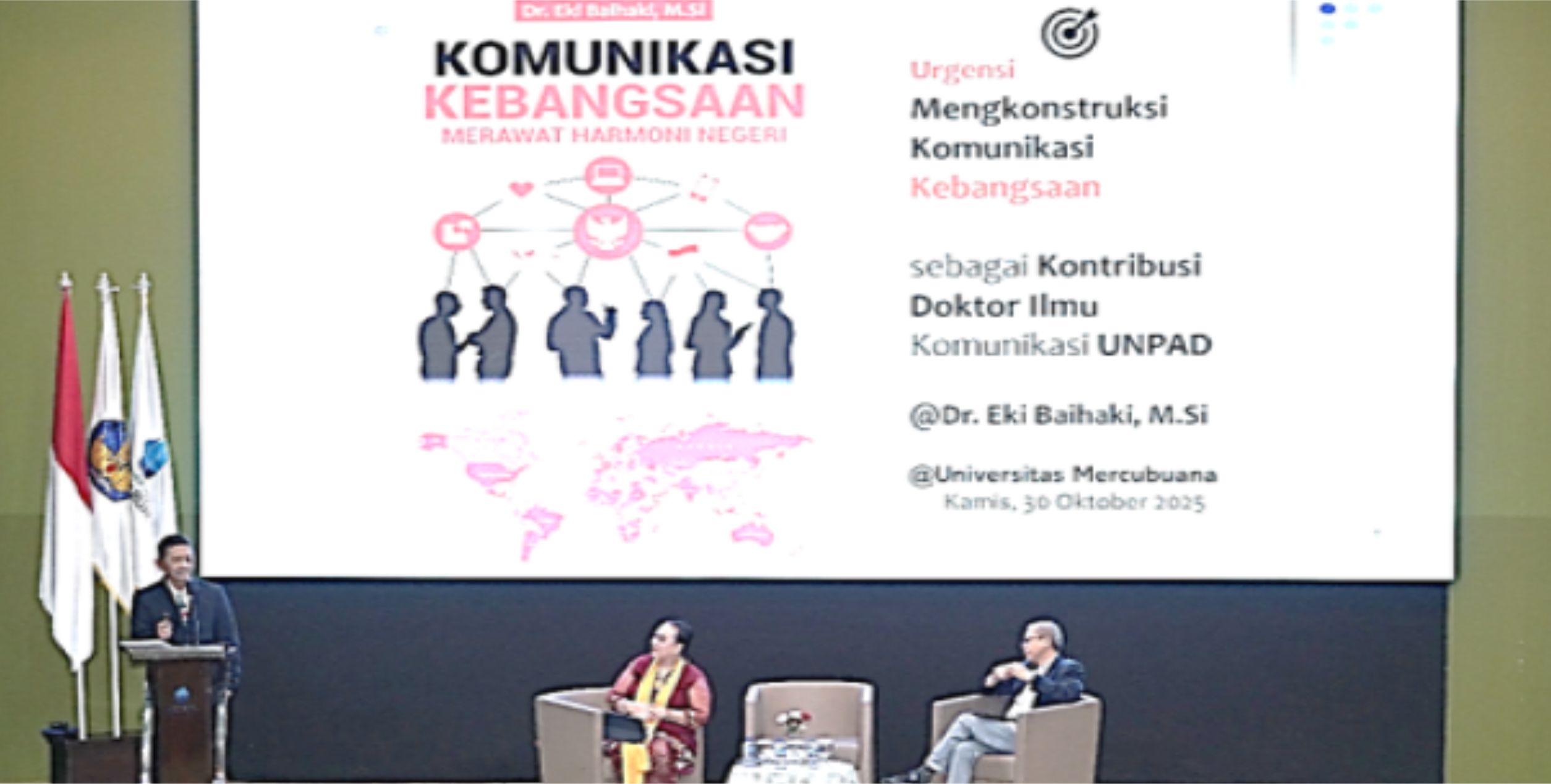 Buku “Komunikasi Kebangsaan Merawat Harmoni Negeri” diluncurkan di sela Seminar Nasional dan Call for Papers Ikatan Doktor Ilmu Komunikasi UNPAD (INDIKASI UNPAD) yang digelar di Kampus Universitas Mercu Buana, Jakarta, 30 Oktober 2025.